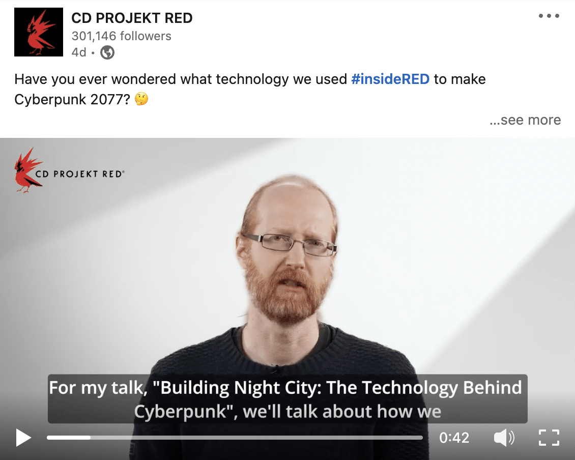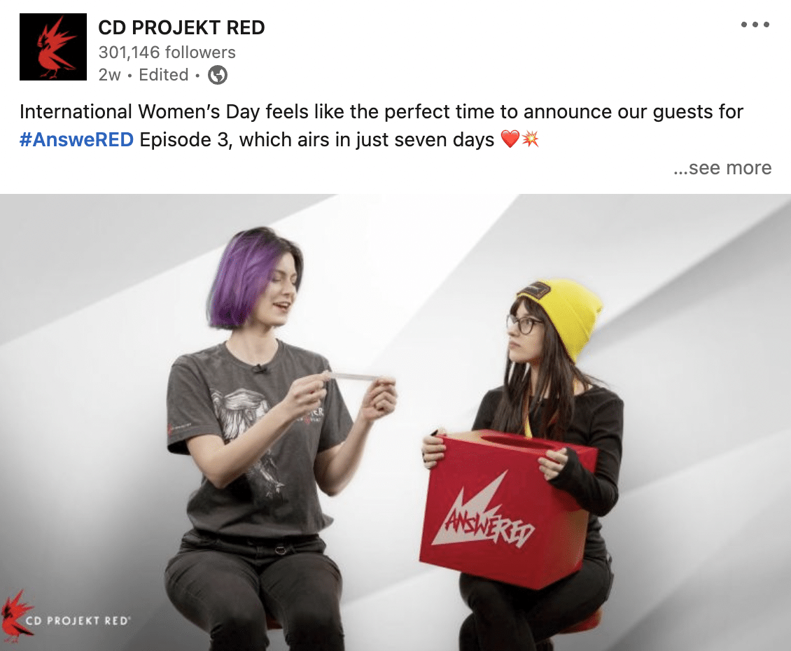 Regularność, konsekwencja i oryginalny content – tak w kilku słowach podsumowałabym to, co na swoim Linkedinowym profilu robi CD Projekt Red.