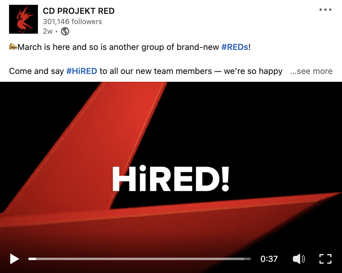Na łamach profilu na Linkedin CD Projekt regularnie informuje też o aktualnych ofertach przy czy wita nowych pracowników w cyklu HiRED!