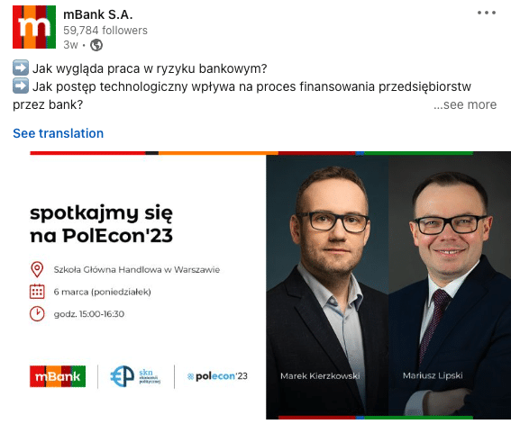 Stał się on głównym light motivem profilu firmy na Linkedin i… bardzo dobrze! W końcu w komunikacji EB, również w social mediach nie możemy zakładać, że jedna wzmianka o wydarzaniu – webinarze, konferncji, targach pracy czy kampanii wystarczy by dotrzeć do naszej grupy docelowej.