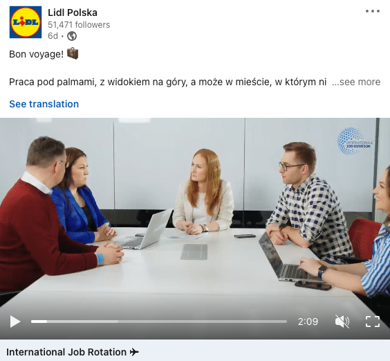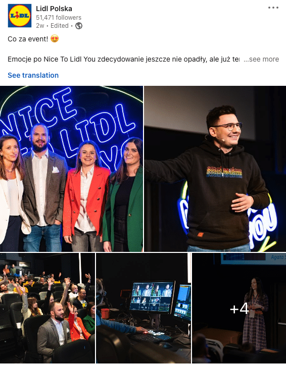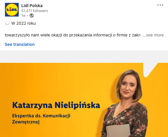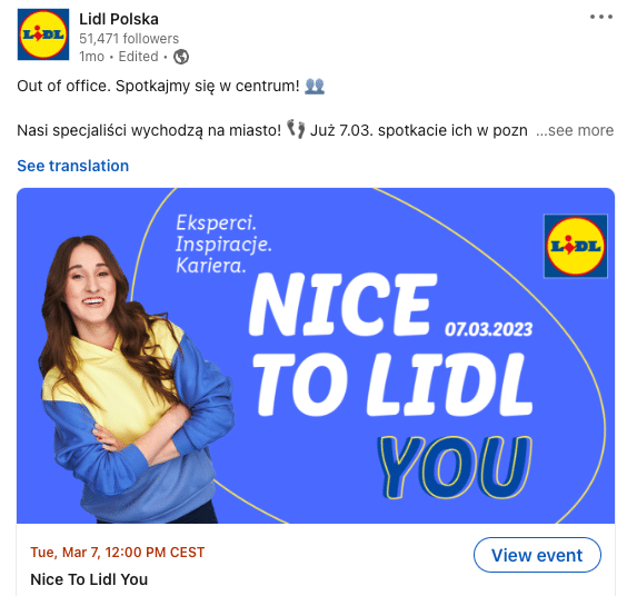 Profil Lidla na Linkedin to nie tylko regularne aktywności, ale też umiejęte wykorzystanie kanału w kontekście trwających inicjatyw rekrutacyjnych i EB.