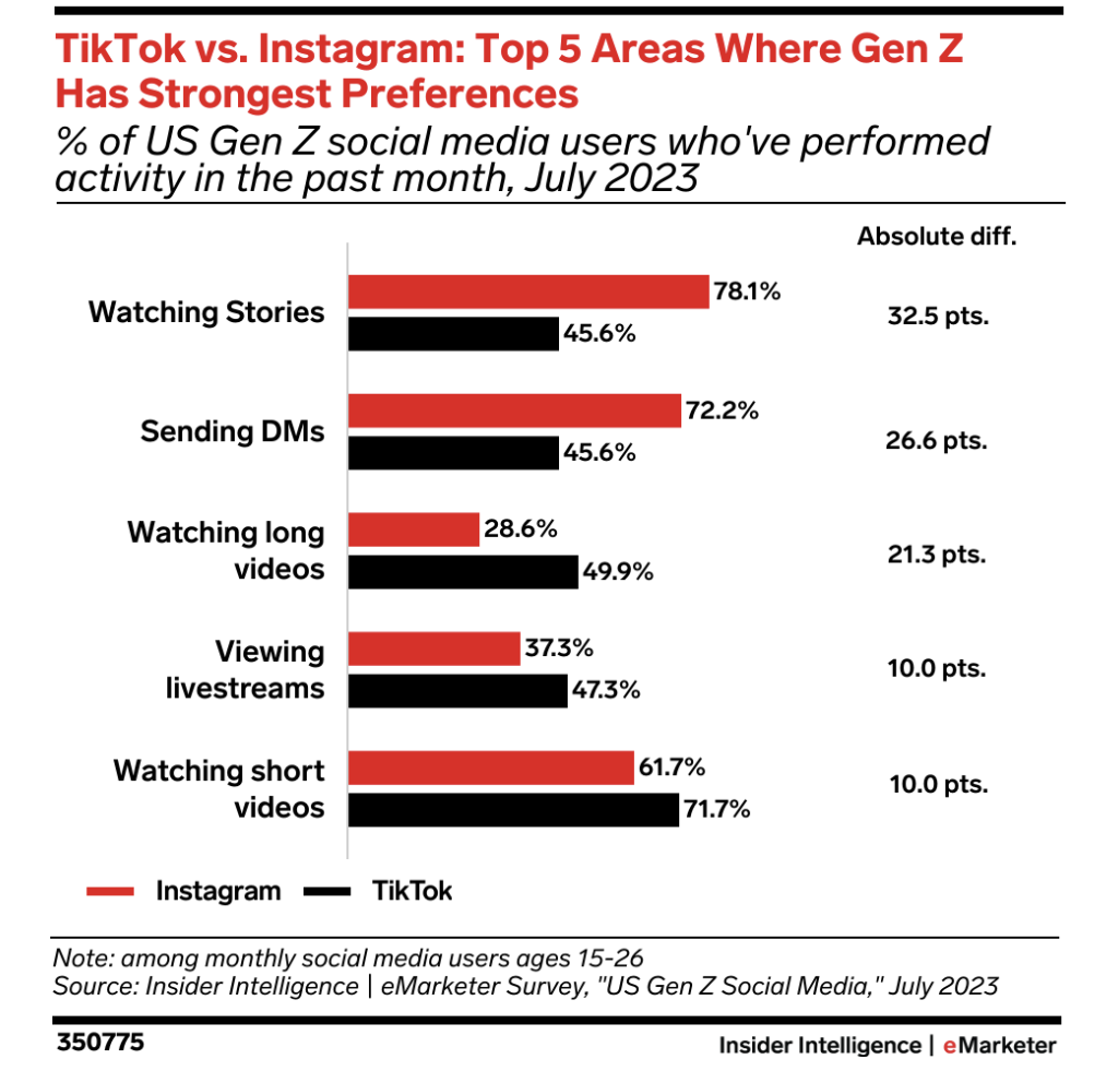 Źródło: https://blog.hubspot.com/marketing/instagram-story-formats - Najskuteczniejsze jeśli chodzi o budowę zasięgu pozostają rolki. Generują one 2x większy zasięg niż pozostałe rodzaje treści na Instagramie.